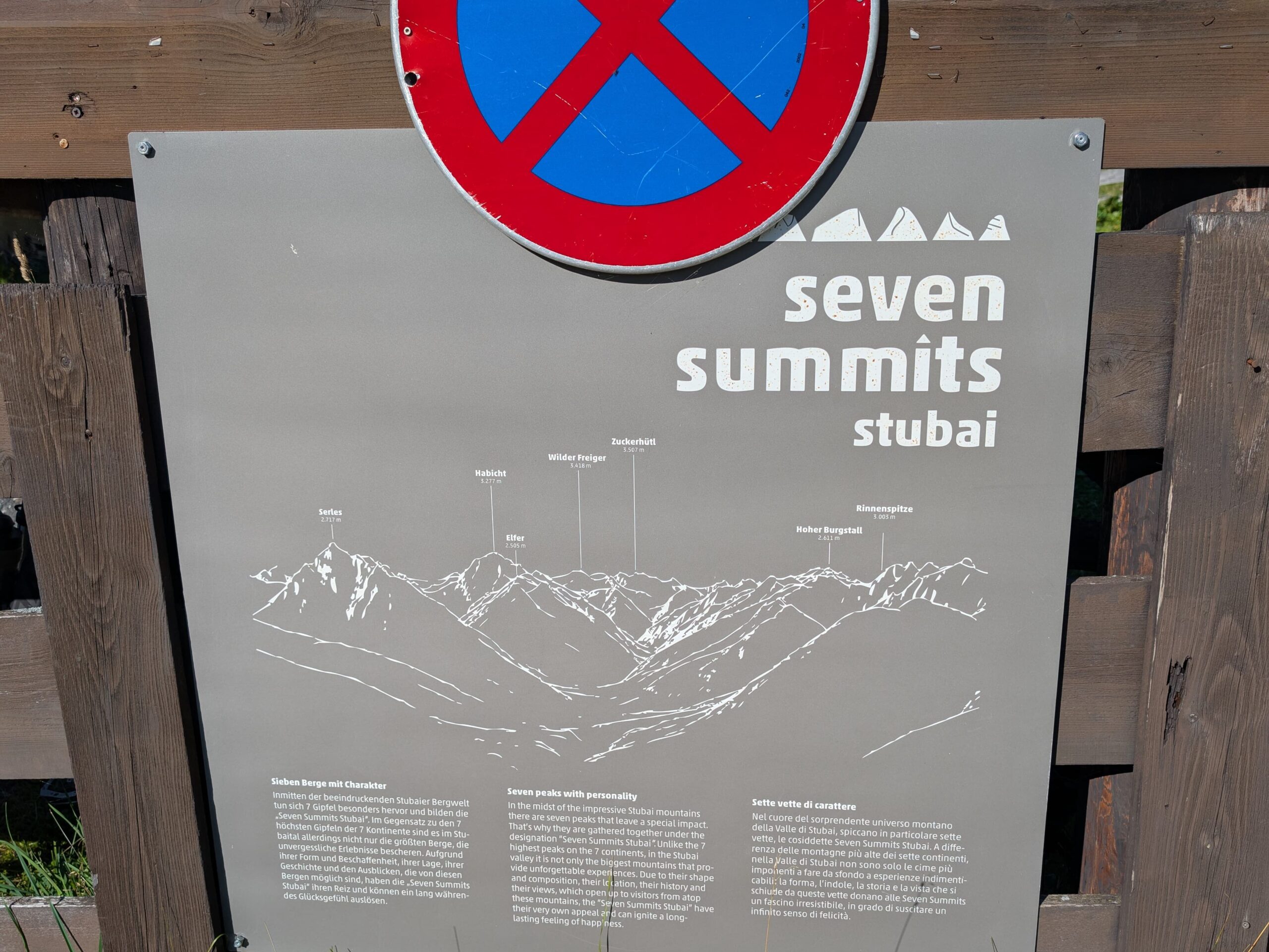 Wir machen uns also auf, um den letzten der Seven Summits of Stubai zu besteigen – eine Reihe von Bergen, die der Tourismus Verband Stubai auf ganz eigene Art und Weise beschreibt. Ich kann dahier diesen Link vor allem dann empfehlen, wenn man einzelne dieser Gipfel bereits kennt – das garantiert herzhafte Lacher, möchte einem das Stubaital ja tatsächlich einreden, dass die Seilbahngipfel Zuckerhütl, Elferspitze und Hoher Burgstall irgendetwas mit den Adjektiven „zurückhaltend“, „schüchtern“, oder gar „überzeugend“ zu tun hat. Doch um die seit Jahren offene Liste doch noch zu vervollständigen – und weil uns dank Sehnenzerrung im Unterarm wahrlich kein besseres Alternativprogramm eingefallen ist – packen wir die Rinnenspitze an und nehmen euch mit, damit ihr auch einen Gipfeltipp mit Eindrücken kriegt.