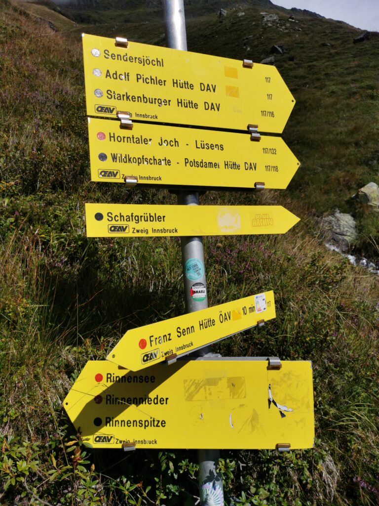 Der Abstiegsweg von der Rinnenspitze verläuft entlang des Aufstiegsweg. Man kann also den ganzen vorangegangenen Bericht nun rückwärtslesen und hat damit auch die Abstiegsbeschreibung perfekt verinnerlicht. Ein Stopp auf der Franz-Senn-Hütte ist durchaus nett. Vor allem die Knödelvariation möchte ich sehr empfehlen – den Kaiserschmarrn (man wirds ahnen) eher nicht. Für einen guten Kaiserschmarrn in großer Höhe empfehle ich euch auf jeden Fall man einen Besuch der Wiesbadener Hütte in Richtung Piz Buin. Großen Hunger sollte man aber mitbringen.